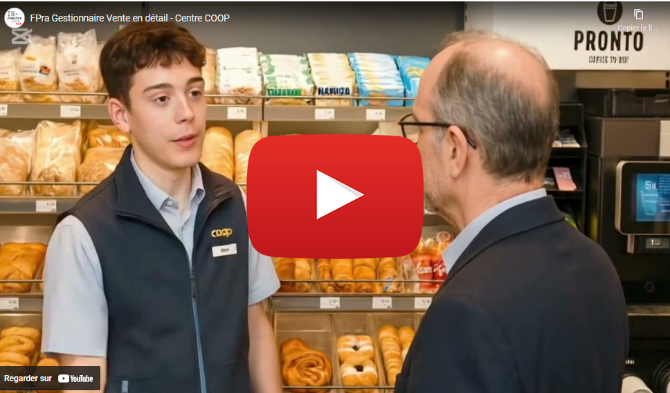 Dans cette vidéo, nous vous présentons la filière "Gestionnaire en commerce de détail", une formation passionnante et adaptée qui prépare les apprenants aux métiers de la vente. C'est chez notre fidèle partenaire COOP à Bassecourt que la formation pratique est instruite.